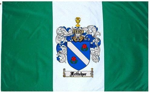 Fritcher Family Crest Flag / Coat of Arms Flag. You will receive a high quality 3' x 5' Polyester flag with two brass grommets. Proudly display your family heritage with this flag, or hang as a banner on a wall. Our flags make great gifts for birthdays, weddings, anniversaries, fathers day, mothers day, groomsmen gifts, and any other occasion