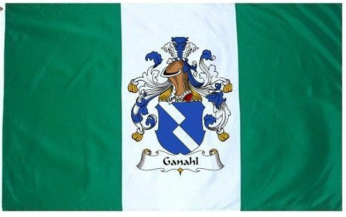 Ganahl Family Crest Flag / Coat of Arms Flag. You will receive a high quality 3' x 5' Polyester flag with two brass grommets. Proudly display your family heritage with this flag, or hang as a banner on a wall. Our flags make great gifts for birthdays, weddings, anniversaries, fathers day, mothers day, groomsmen gifts, and any other occasion