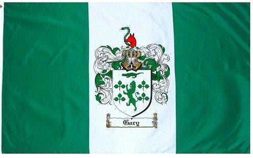 Gary Family Crest Flag / Coat of Arms Flag. You will receive a high quality 3' x 5' Polyester flag with two brass grommets. Proudly display your family heritage with this flag, or hang as a banner on a wall. Our flags make great gifts for birthdays, weddings, anniversaries, fathers day, mothers day, groomsmen gifts, and any other occasion