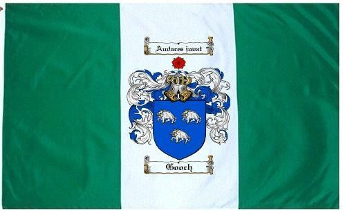 Gooch Family Crest Flag / Coat of Arms Flag. You will receive a high quality 3' x 5' Polyester flag with two brass grommets. Proudly display your family heritage with this flag, or hang as a banner on a wall. Our flags make great gifts for birthdays, weddings, anniversaries, fathers day, mothers day, groomsmen gifts, and any other occasion