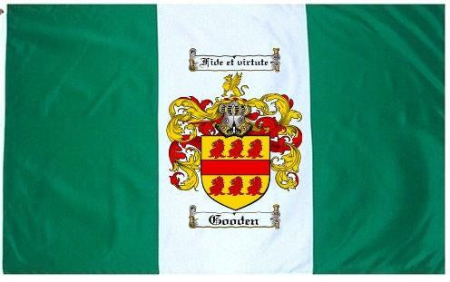 Gooden Family Crest Flag / Coat of Arms Flag. You will receive a high quality 3' x 5' Polyester flag with two brass grommets. Proudly display your family heritage with this flag, or hang as a banner on a wall. Our flags make great gifts for birthdays, weddings, anniversaries, fathers day, mothers day, groomsmen gifts, and any other occasion