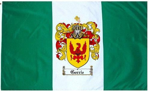 Gorrie Family Crest Flag / Coat of Arms Flag. You will receive a high quality 3' x 5' Polyester flag with two brass grommets. Proudly display your family heritage with this flag, or hang as a banner on a wall. Our flags make great gifts for birthdays, weddings, anniversaries, fathers day, mothers day, groomsmen gifts, and any other occasion