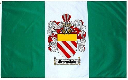 Greenslade Family Crest Flag / Coat of Arms Flag. You will receive a high quality 3' x 5' Polyester flag with two brass grommets. Proudly display your family heritage with this flag, or hang as a banner on a wall. Our flags make great gifts for birthdays, weddings, anniversaries, fathers day, mothers day, groomsmen gifts, and any other occasion