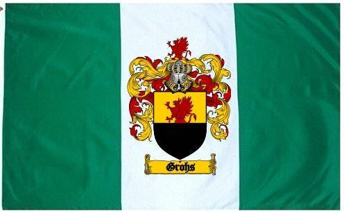 Grohs Family Crest Flag / Coat of Arms Flag. You will receive a high quality 3' x 5' Polyester flag with two brass grommets. Proudly display your family heritage with this flag, or hang as a banner on a wall. Our flags make great gifts for birthdays, weddings, anniversaries, fathers day, mothers day, groomsmen gifts, and any other occasion