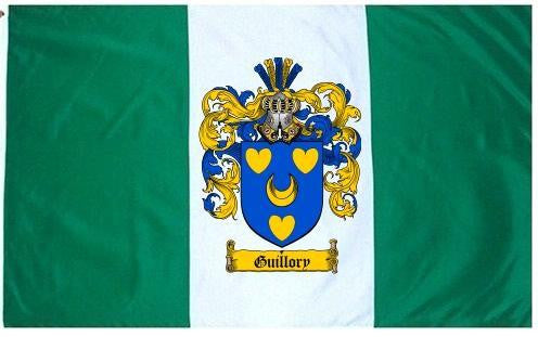 Guillory Family Crest Flag / Coat of Arms Flag. You will receive a high quality 3' x 5' Polyester flag with two brass grommets. Proudly display your family heritage with this flag, or hang as a banner on a wall. Our flags make great gifts for birthdays, weddings, anniversaries, fathers day, mothers day, groomsmen gifts, and any other occasion