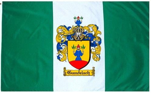 Gundelach Family Crest Flag / Coat of Arms Flag. You will receive a high quality 3' x 5' Polyester flag with two brass grommets. Proudly display your family heritage with this flag, or hang as a banner on a wall. Our flags make great gifts for birthdays, weddings, anniversaries, fathers day, mothers day, groomsmen gifts, and any other occasion