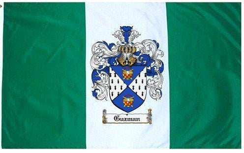 Guzman Family Crest Flag / Coat of Arms Flag. You will receive a high quality 3' x 5' Polyester flag with two brass grommets. Proudly display your family heritage with this flag, or hang as a banner on a wall. Our flags make great gifts for birthdays, weddings, anniversaries, fathers day, mothers day, groomsmen gifts, and any other occasion