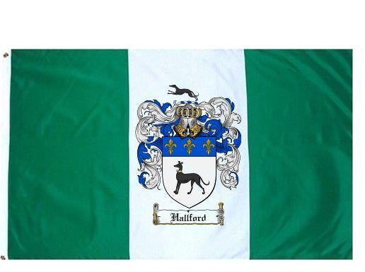 Hallford Family Crest Flag / Coat of Arms Flag. You will receive a high quality 3' x 5' Polyester flag with two brass grommets. Proudly display your family heritage with this flag, or hang as a banner on a wall. Our flags make great gifts for birthdays, weddings, anniversaries, fathers day, mothers day, groomsmen gifts, and any other occasion