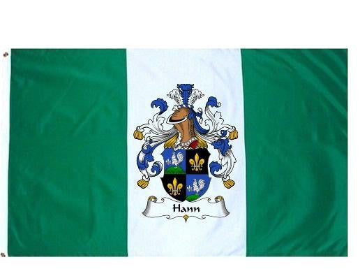 Hann Family Crest Flag / Coat of Arms Flag. You will receive a high quality 3' x 5' Polyester flag with two brass grommets. Proudly display your family heritage with this flag, or hang as a banner on a wall. Our flags make great gifts for birthdays, weddings, anniversaries, fathers day, mothers day, groomsmen gifts, and any other occasion