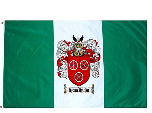 Haselhuhn Family Crest Flag / Coat of Arms Flag. You will receive a high quality 3' x 5' Polyester flag with two brass grommets. Proudly display your family heritage with this flag, or hang as a banner on a wall. Our flags make great gifts for birthdays, weddings, anniversaries, fathers day, mothers day, groomsmen gifts, and any other occasion