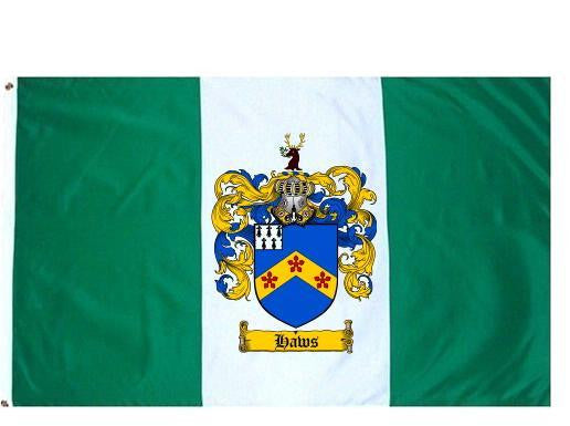 Haws Family Crest Flag / Coat of Arms Flag. You will receive a high quality 3' x 5' Polyester flag with two brass grommets. Proudly display your family heritage with this flag, or hang as a banner on a wall. Our flags make great gifts for birthdays, weddings, anniversaries, fathers day, mothers day, groomsmen gifts, and any other occasion