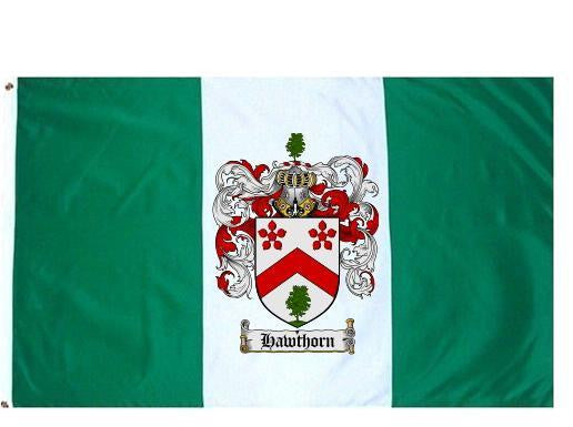 Hawthorn Family Crest Flag / Coat of Arms Flag. You will receive a high quality 3' x 5' Polyester flag with two brass grommets. Proudly display your family heritage with this flag, or hang as a banner on a wall. Our flags make great gifts for birthdays, weddings, anniversaries, fathers day, mothers day, groomsmen gifts, and any other occasion