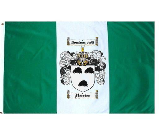 Herries Family Crest Flag / Coat of Arms Flag. You will receive a high quality 3' x 5' Polyester flag with two brass grommets. Proudly display your family heritage with this flag, or hang as a banner on a wall. Our flags make great gifts for birthdays, weddings, anniversaries, fathers day, mothers day, groomsmen gifts, and any other occasion