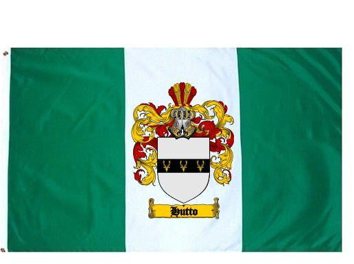 Hutto Family Crest Flag / Coat of Arms Flag. You will receive a high quality 3' x 5' Polyester flag with two brass grommets. Proudly display your family heritage with this flag, or hang as a banner on a wall. Our flags make great gifts for birthdays, weddings, anniversaries, fathers day, mothers day, groomsmen gifts, and any other occasion