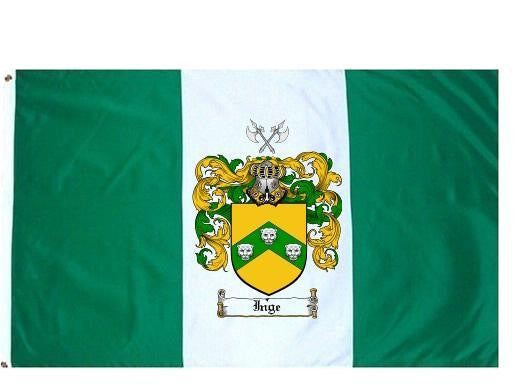 Inge Family Crest Flag / Coat of Arms Flag. You will receive a high quality 3' x 5' Polyester flag with two brass grommets. Proudly display your family heritage with this flag, or hang as a banner on a wall. Our flags make great gifts for birthdays, weddings, anniversaries, fathers day, mothers day, groomsmen gifts, and any other occasion