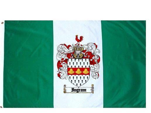 Ingram Family Crest Flag / Coat of Arms Flag. You will receive a high quality 3' x 5' Polyester flag with two brass grommets. Proudly display your family heritage with this flag, or hang as a banner on a wall. Our flags make great gifts for birthdays, weddings, anniversaries, fathers day, mothers day, groomsmen gifts, and any other occasion