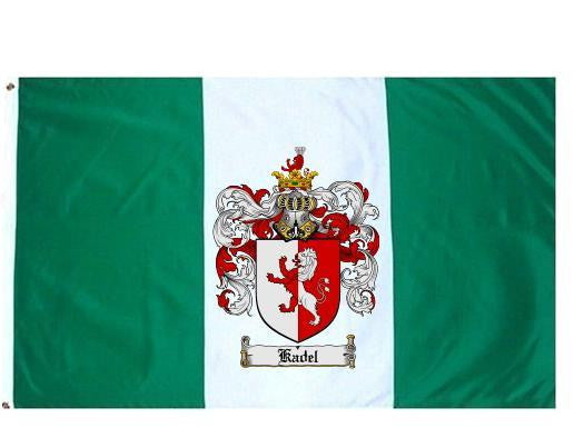 Kadel Family Crest Flag / Coat of Arms Flag. You will receive a high quality 3' x 5' Polyester flag with two brass grommets. Proudly display your family heritage with this flag, or hang as a banner on a wall. Our flags make great gifts for birthdays, weddings, anniversaries, fathers day, mothers day, groomsmen gifts, and any other occasion