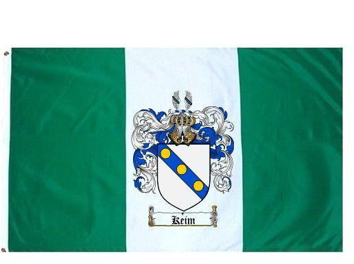 Keim Family Crest Flag / Coat of Arms Flag. You will receive a high quality 3' x 5' Polyester flag with two brass grommets. Proudly display your family heritage with this flag, or hang as a banner on a wall. Our flags make great gifts for birthdays, weddings, anniversaries, fathers day, mothers day, groomsmen gifts, and any other occasion