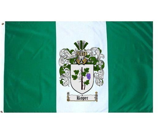 Kopec Family Crest Flag / Coat of Arms Flag. You will receive a high quality 3' x 5' Polyester flag with two brass grommets. Proudly display your family heritage with this flag, or hang as a banner on a wall. Our flags make great gifts for birthdays, weddings, anniversaries, fathers day, mothers day, groomsmen gifts, and any other occasion