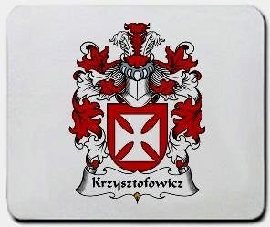 Krzysztofowicz Coat of Arms / Family Crest Mouse Pad. Your Family Coat of Arms printed in full color on a high quality Mouse mat.