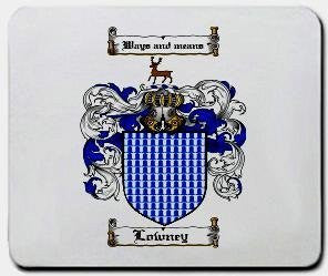 Lowney Coat of Arms / Family Crest Mouse Pad. Your Family Coat of Arms printed in full color on a high quality Mouse mat.