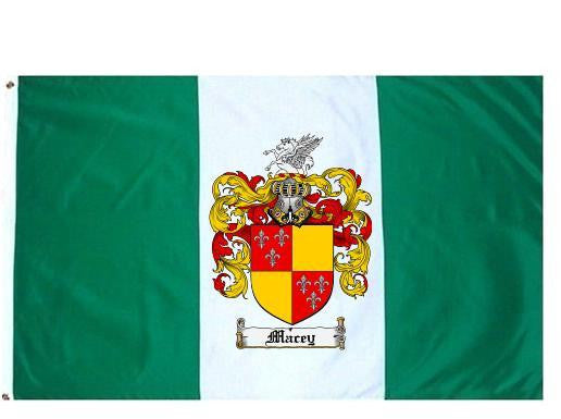 Macey Family Crest Flag / Coat of Arms Flag. You will receive a high quality 3' x 5' Polyester flag with two brass grommets. Proudly display your family heritage with this flag, or hang as a banner on a wall. Our flags make great gifts for birthdays, weddings, anniversaries, fathers day, mothers day, groomsmen gifts, and any other occasion