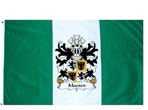 Macsen Family Crest Flag / Coat of Arms Flag. You will receive a high quality 3' x 5' Polyester flag with two brass grommets. Proudly display your family heritage with this flag, or hang as a banner on a wall. Our flags make great gifts for birthdays, weddings, anniversaries, fathers day, mothers day, groomsmen gifts, and any other occasion