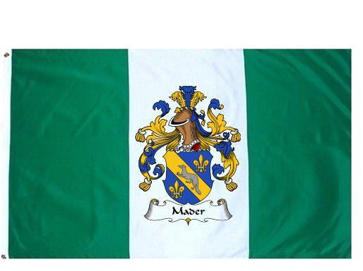 Mader Family Crest Flag / Coat of Arms Flag. You will receive a high quality 3' x 5' Polyester flag with two brass grommets. Proudly display your family heritage with this flag, or hang as a banner on a wall. Our flags make great gifts for birthdays, weddings, anniversaries, fathers day, mothers day, groomsmen gifts, and any other occasion