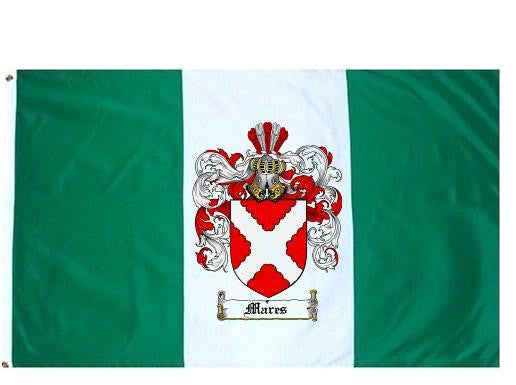 Mares Family Crest Flag / Coat of Arms Flag. You will receive a high quality 3' x 5' Polyester flag with two brass grommets. Proudly display your family heritage with this flag, or hang as a banner on a wall. Our flags make great gifts for birthdays, weddings, anniversaries, fathers day, mothers day, groomsmen gifts, and any other occasion