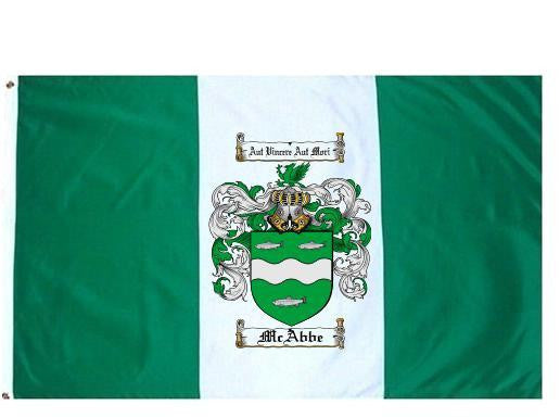 Mcabbe Family Crest Flag / Coat of Arms Flag. You will receive a high quality 3' x 5' Polyester flag with two brass grommets. Proudly display your family heritage with this flag, or hang as a banner on a wall. Our flags make great gifts for birthdays, weddings, anniversaries, fathers day, mothers day, groomsmen gifts, and any other occasion