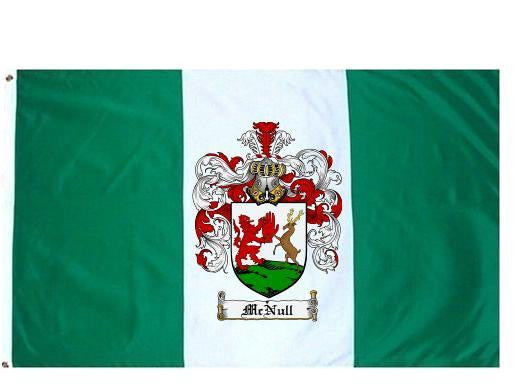Mcnull Family Crest Flag / Coat of Arms Flag. You will receive a high quality 3' x 5' Polyester flag with two brass grommets. Proudly display your family heritage with this flag, or hang as a banner on a wall. Our flags make great gifts for birthdays, weddings, anniversaries, fathers day, mothers day, groomsmen gifts, and any other occasion