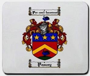 Peavey Coat of Arms / Family Crest Mouse Pad. Your Family Coat of Arms printed in full color on a high quality Mouse mat.