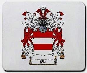 Pio Coat of Arms / Family Crest Mouse Pad. Your Family Coat of Arms printed in full color on a high quality Mouse mat.