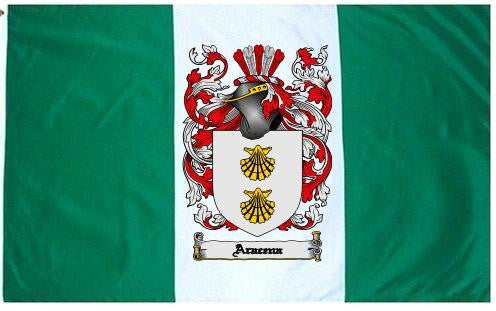 Aracena Family Crest Flag / Coat of Arms Flag. You will receive a high quality 3' x 5' Polyester flag with two brass grommets. Proudly display your family heritage with this flag, or hang as a banner on a wall. Our flags make great gifts for birthdays, weddings, anniversaries, fathers day, mothers day, groomsmen gifts, and any other occasion