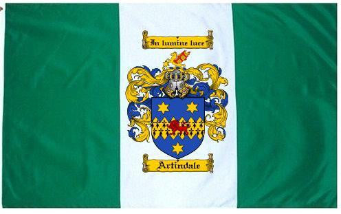 Artindale Family Crest Flag / Coat of Arms Flag. You will receive a high quality 3' x 5' Polyester flag with two brass grommets. Proudly display your family heritage with this flag, or hang as a banner on a wall. Our flags make great gifts for birthdays, weddings, anniversaries, fathers day, mothers day, groomsmen gifts, and any other occasion