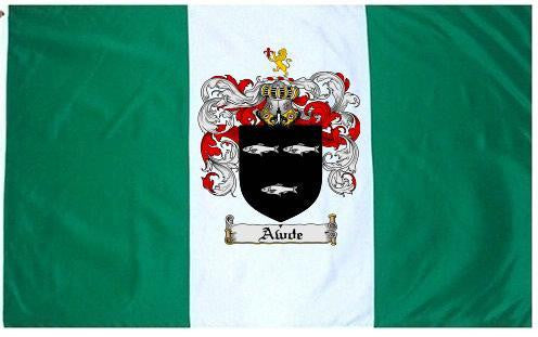 Awde Family Crest Flag / Coat of Arms Flag. You will receive a high quality 3' x 5' Polyester flag with two brass grommets. Proudly display your family heritage with this flag, or hang as a banner on a wall. Our flags make great gifts for birthdays, weddings, anniversaries, fathers day, mothers day, groomsmen gifts, and any other occasion