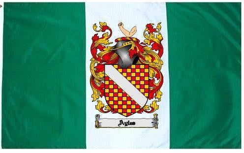 Ayles Family Crest Flag / Coat of Arms Flag. You will receive a high quality 3' x 5' Polyester flag with two brass grommets. Proudly display your family heritage with this flag, or hang as a banner on a wall. Our flags make great gifts for birthdays, weddings, anniversaries, fathers day, mothers day, groomsmen gifts, and any other occasion