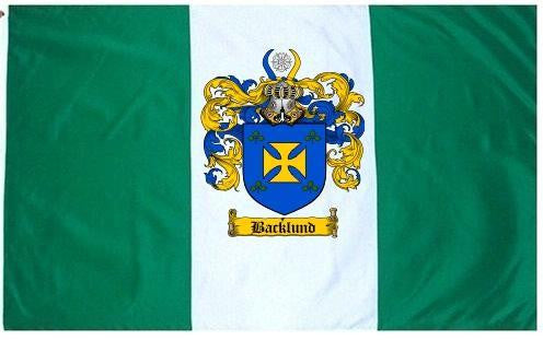 Backlund Family Crest Flag / Coat of Arms Flag. You will receive a high quality 3' x 5' Polyester flag with two brass grommets. Proudly display your family heritage with this flag, or hang as a banner on a wall. Our flags make great gifts for birthdays, weddings, anniversaries, fathers day, mothers day, groomsmen gifts, and any other occasion