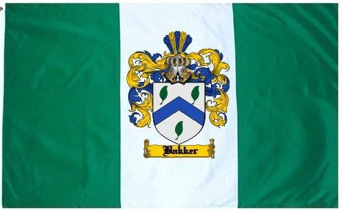 Bakker Family Crest Flag / Coat of Arms Flag. You will receive a high quality 3' x 5' Polyester flag with two brass grommets. Proudly display your family heritage with this flag, or hang as a banner on a wall. Our flags make great gifts for birthdays, weddings, anniversaries, fathers day, mothers day, groomsmen gifts, and any other occasion