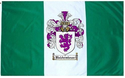 Balderstoun Family Crest Flag / Coat of Arms Flag. You will receive a high quality 3' x 5' Polyester flag with two brass grommets. Proudly display your family heritage with this flag, or hang as a banner on a wall. Our flags make great gifts for birthdays, weddings, anniversaries, fathers day, mothers day, groomsmen gifts, and any other occasion