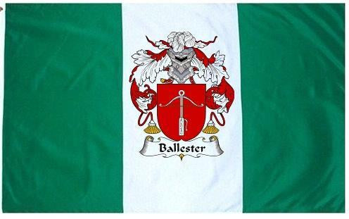 Ballester Family Crest Flag / Coat of Arms Flag. You will receive a high quality 3' x 5' Polyester flag with two brass grommets. Proudly display your family heritage with this flag, or hang as a banner on a wall. Our flags make great gifts for birthdays, weddings, anniversaries, fathers day, mothers day, groomsmen gifts, and any other occasion