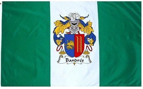 Bandres Family Crest Flag / Coat of Arms Flag. You will receive a high quality 3' x 5' Polyester flag with two brass grommets. Proudly display your family heritage with this flag, or hang as a banner on a wall. Our flags make great gifts for birthdays, weddings, anniversaries, fathers day, mothers day, groomsmen gifts, and any other occasion