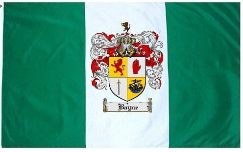 Bayne Family Crest Flag / Coat of Arms Flag. You will receive a high quality 3' x 5' Polyester flag with two brass grommets. Proudly display your family heritage with this flag, or hang as a banner on a wall. Our flags make great gifts for birthdays, weddings, anniversaries, fathers day, mothers day, groomsmen gifts, and any other occasion