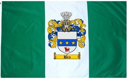 Bea Family Crest Flag / Coat of Arms Flag. You will receive a high quality 3' x 5' Polyester flag with two brass grommets. Proudly display your family heritage with this flag, or hang as a banner on a wall. Our flags make great gifts for birthdays, weddings, anniversaries, fathers day, mothers day, groomsmen gifts, and any other occasion