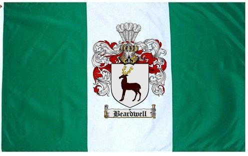 Beardwell Family Crest Flag / Coat of Arms Flag. You will receive a high quality 3' x 5' Polyester flag with two brass grommets. Proudly display your family heritage with this flag, or hang as a banner on a wall. Our flags make great gifts for birthdays, weddings, anniversaries, fathers day, mothers day, groomsmen gifts, and any other occasion