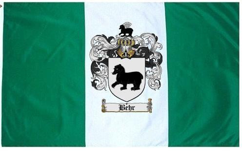 Behr Family Crest Flag / Coat of Arms Flag. You will receive a high quality 3' x 5' Polyester flag with two brass grommets. Proudly display your family heritage with this flag, or hang as a banner on a wall. Our flags make great gifts for birthdays, weddings, anniversaries, fathers day, mothers day, groomsmen gifts, and any other occasion