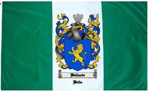 Bellante Family Crest Flag / Coat of Arms Flag. You will receive a high quality 3' x 5' Polyester flag with two brass grommets. Proudly display your family heritage with this flag, or hang as a banner on a wall. Our flags make great gifts for birthdays, weddings, anniversaries, fathers day, mothers day, groomsmen gifts, and any other occasion