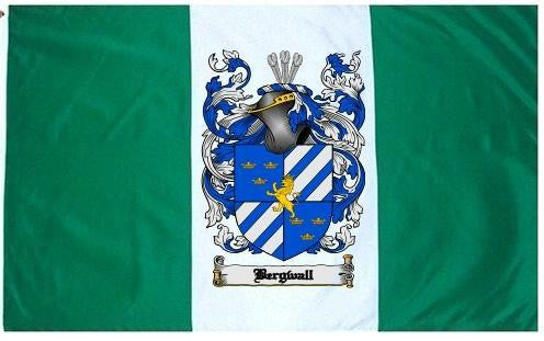 Bergwall Family Crest Flag / Coat of Arms Flag. You will receive a high quality 3' x 5' Polyester flag with two brass grommets. Proudly display your family heritage with this flag, or hang as a banner on a wall. Our flags make great gifts for birthdays, weddings, anniversaries, fathers day, mothers day, groomsmen gifts, and any other occasion