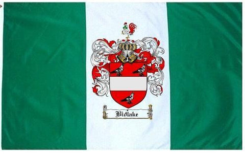 Bidlake Family Crest Flag / Coat of Arms Flag. You will receive a high quality 3' x 5' Polyester flag with two brass grommets. Proudly display your family heritage with this flag, or hang as a banner on a wall. Our flags make great gifts for birthdays, weddings, anniversaries, fathers day, mothers day, groomsmen gifts, and any other occasion