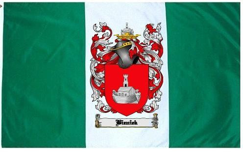Bieniek Family Crest Flag / Coat of Arms Flag. You will receive a high quality 3' x 5' Polyester flag with two brass grommets. Proudly display your family heritage with this flag, or hang as a banner on a wall. Our flags make great gifts for birthdays, weddings, anniversaries, fathers day, mothers day, groomsmen gifts, and any other occasion